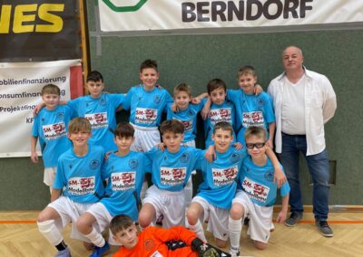 Im Rahmen des Turniers konnten unsere U12-Kicker ihr neues, himmelblaues Outfit erstmals in voller Pracht präsentieren. Das gemeinsame Foto mit Sponsor Mario Schönleitner und der gesamten Mannschaft zeigt: Die Freude über die neuen Dressen war riesig – und sie scheinen zusätzlich motiviert zu haben, denn unsere Jungs legten im weiteren Turnierverlauf spielerisch noch einmal nach.